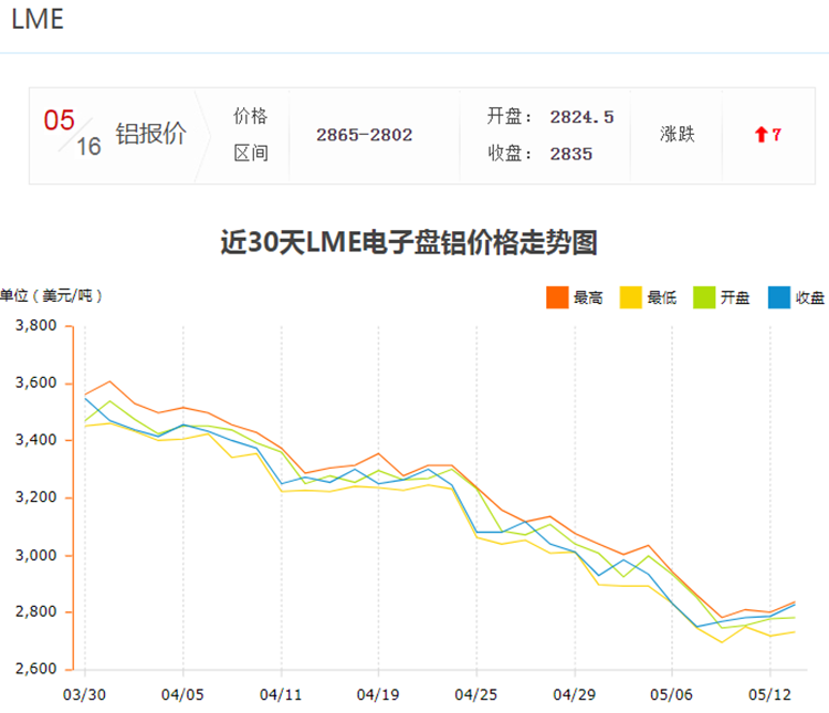 3、未來發(fā)展趨勢:隨著環(huán)保意識的提高和技術(shù)的不斷進(jìn)步,未來鋁產(chǎn)業(yè)的發(fā)展將面臨新的挑戰(zhàn)和機(jī)遇,LME鋁價在未來的發(fā)展趨勢中可能會受到更多因素的影響,但其在全球經(jīng)濟(jì)和現(xiàn)代工業(yè)中的重要地位仍將保持不變。