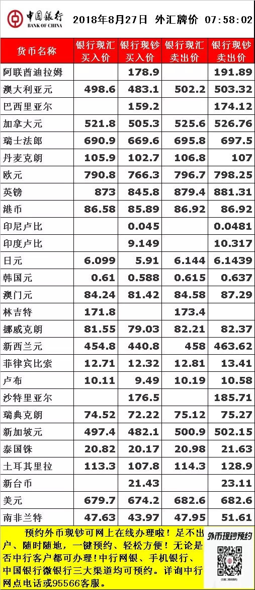 中行外匯牌價簡介