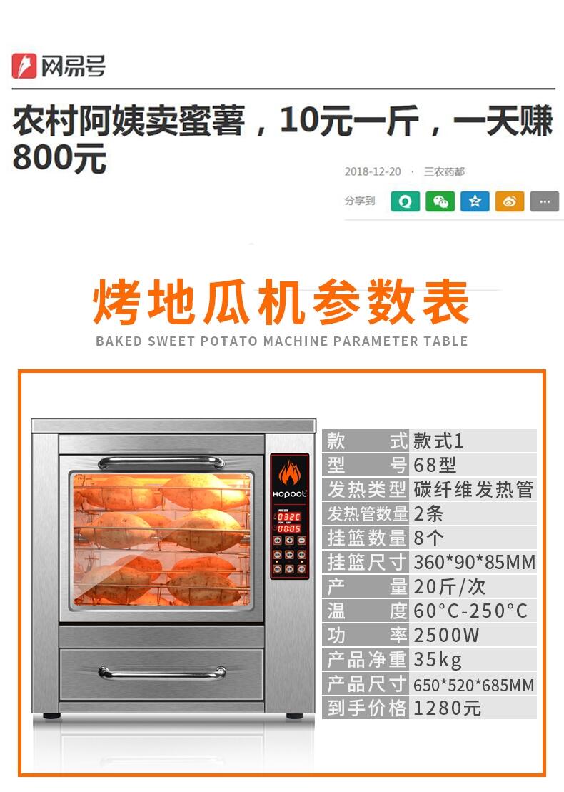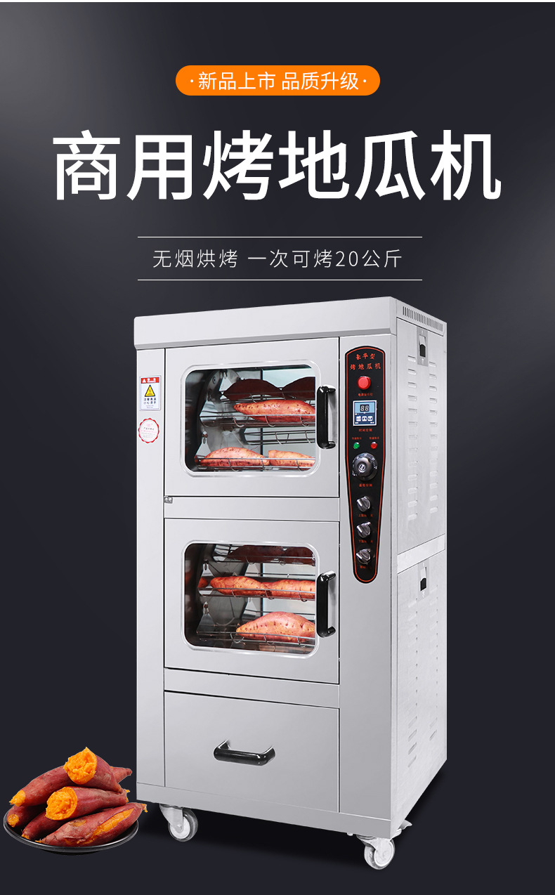 2、烤制效果更加出色:與傳統(tǒng)烤制方式相比,最新烤地瓜機(jī)烤制出的地瓜更加均勻、色澤金黃、口感更佳,其獨(dú)特的烤制模式能夠保留地瓜的營養(yǎng)成分,使地瓜更加美味健康。