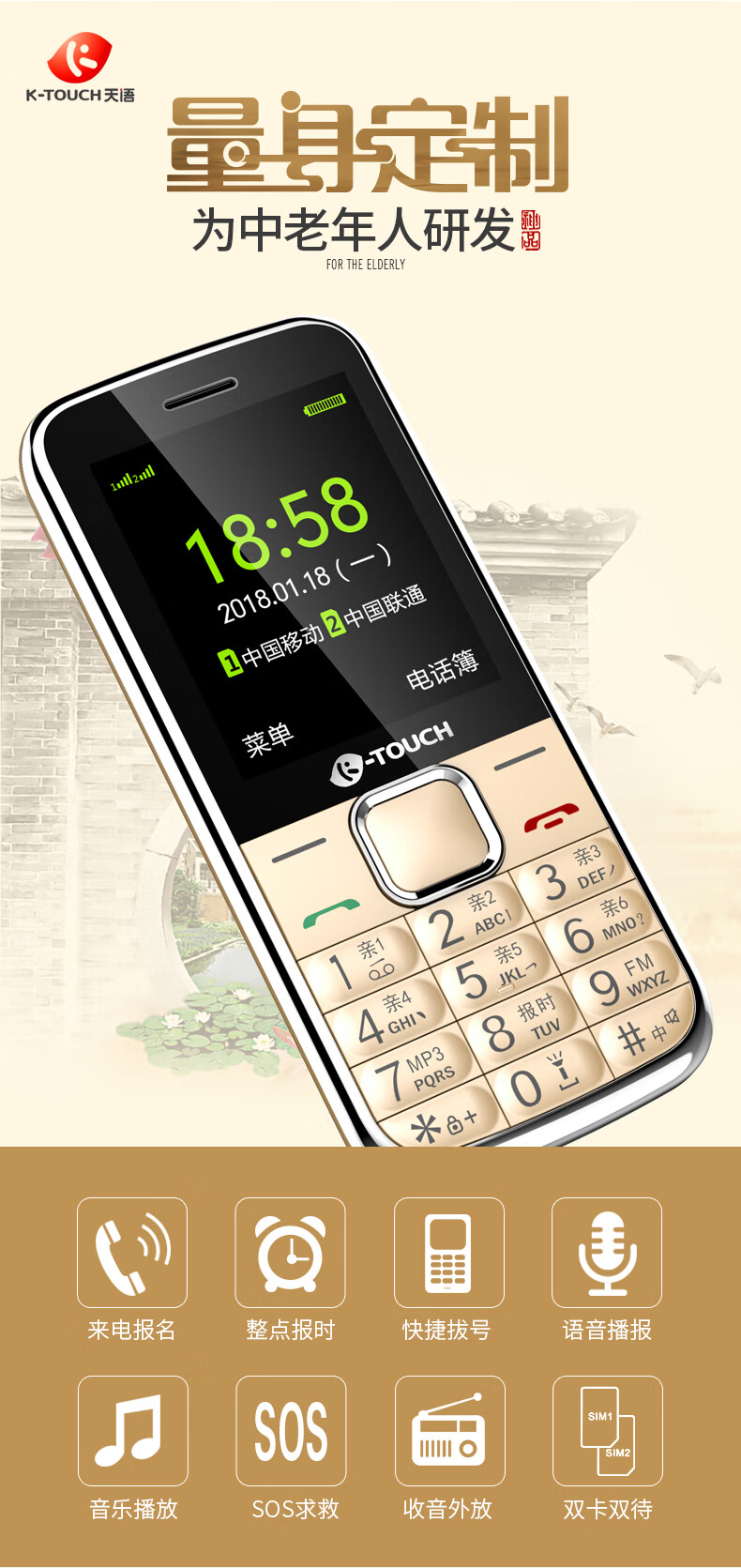 1、大屏幕和簡(jiǎn)潔的操作系統(tǒng),方便老年人閱讀和使用。